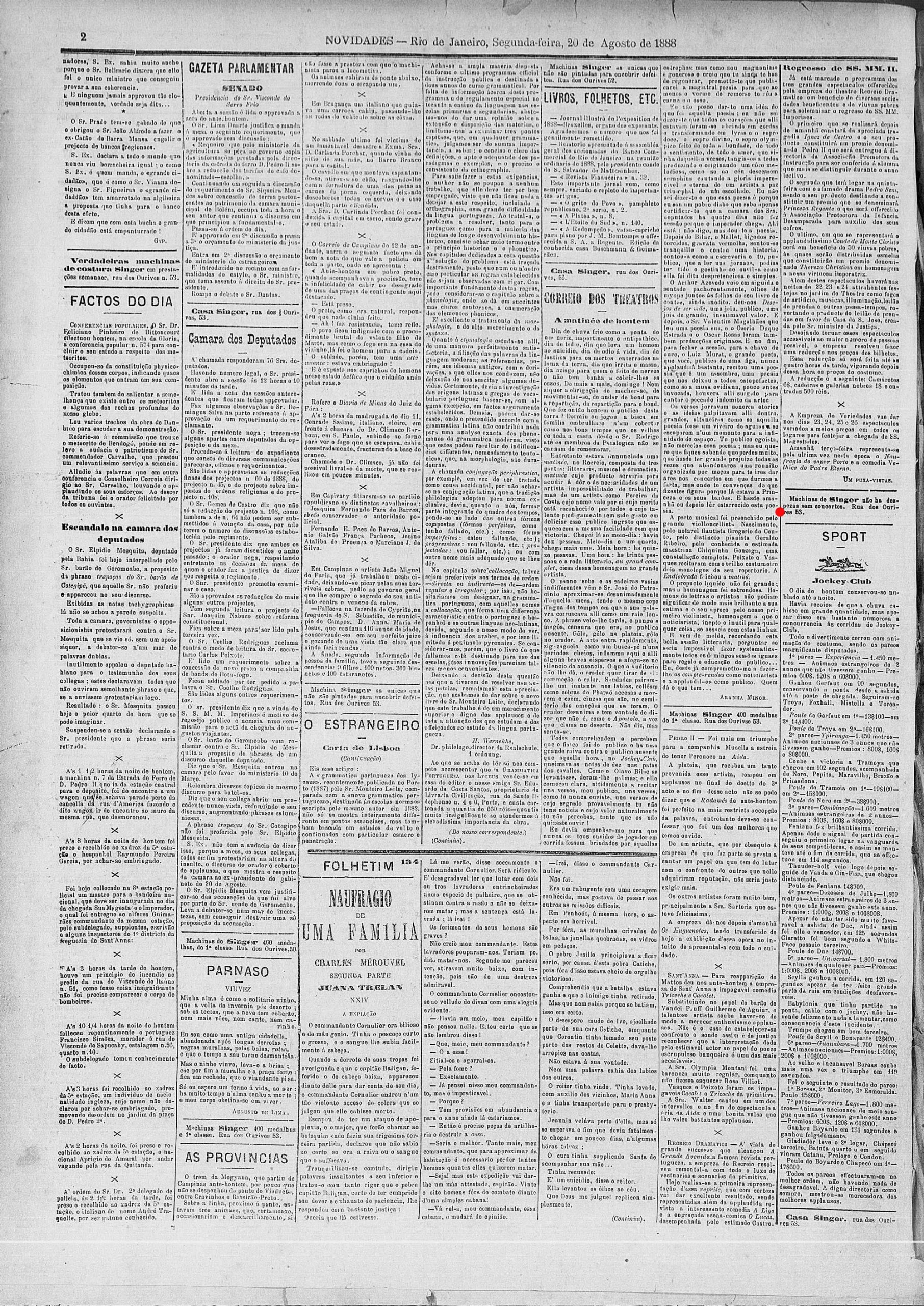 O periódico Novidades RJ, de 20 de agosto de 1888, anuncia na coluna “Correio dos Theatros – A matinê de ontem”, uma homenagem em benefício do artista Pereira da Costa onde, na parte musical, entre os músicos, Chiquinha Gonzaga.