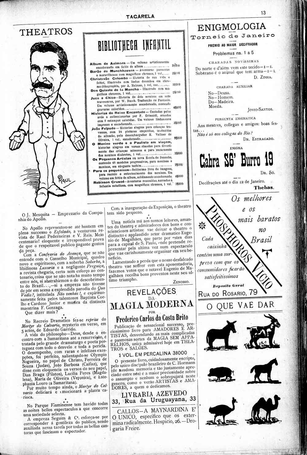 O periódico TAGARELA, RJ, de 7 de janeiro de 1904 anuncia a peça teatral Não venhas! com música da distinta maestrina F. Gonzaga (Chiquinha Gonzaga).